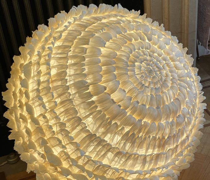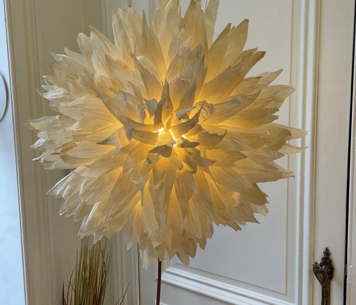 A true feast for the eyes, this handmade creation comprised flowers and various forms crafted from real corn leaves and other natural elements sourced from Mexico and India. Intrigued by the beauty of this luminous artwork, I inquired about the artist behind it, leading me to Natalia Germinde.