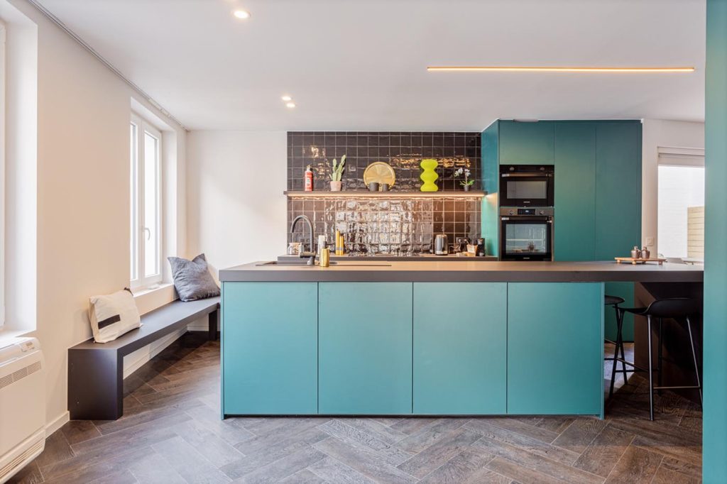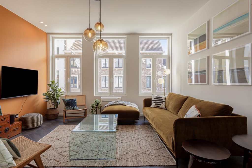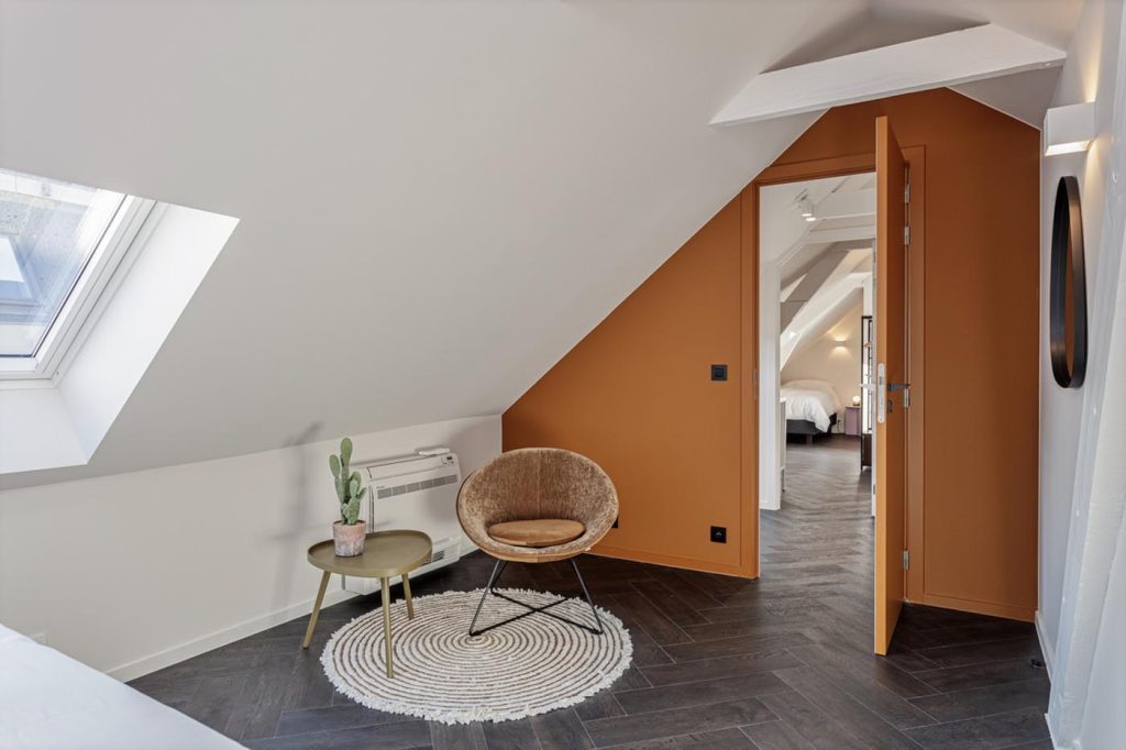 Uma’s Urban Lounge is a stylish duplex apartment, newly renovated in 2023, featuring a furnished terrace in the car-free heart of Mechelen. Meticulously adorned with designer furniture, the apartment invites you to lounge with family or friends, offering a 55-inch TV, music box, and a well-equipped kitchen. Quality hotel beds and air conditioning guarantee a comfortable night’s sleep, while the bathrooms boast rain showers for a touch of luxury.