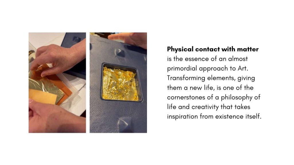 “Physical contact with matter is the essence of an almost primordial approach to Art. Transforming elements, giving them a new life, is one of the cornerstones of a philosophy of life and creativity that takes inspiration from existence itself.”
