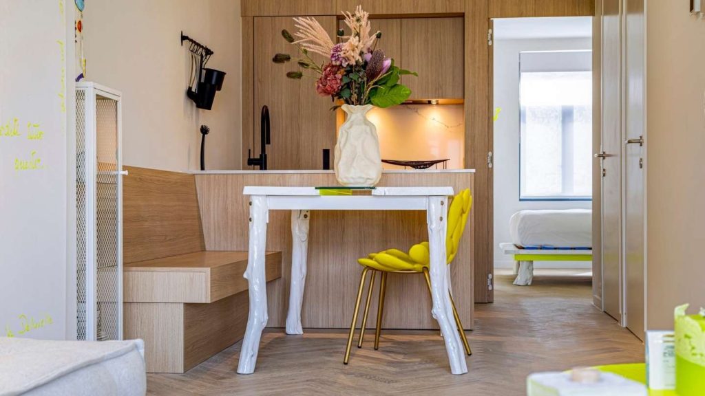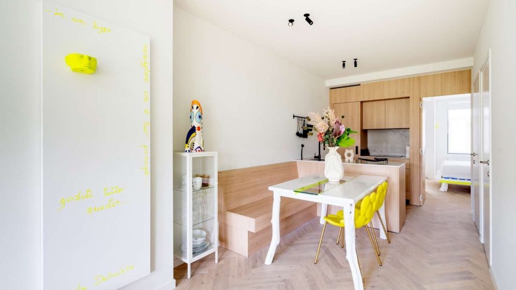 On the historic Vrijdagsmarkt square, an old facade has been fully restored, maintaining its authenticity, and three apartments have been completely installed. These three apartments are fully equipped with all the necessary comforts.